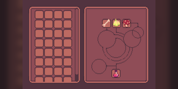 I already have a set of UI components for the inventory, so I'll use the same assets I've made to build a second UI for the alchemy system. The basic layout and requirements of the alchemy UI will be the same regardless of player level, but more options may become available at higher levels.