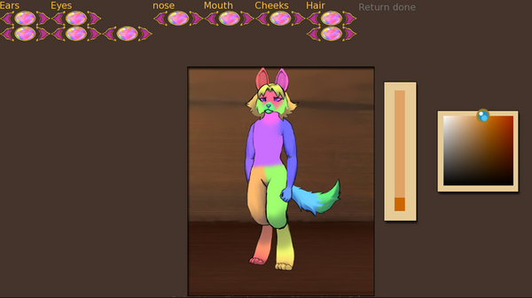 Currently working on...the character creator! My partner plans to write a detailed devlog soon about how he made the hueslider and color picker, he really did an amazing job! So everyone three cheers for person! yippie! yippie! yippie!