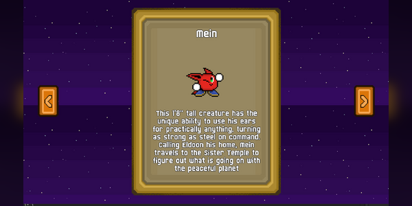 Some UI assets and even the design itself may change in future builds, but I’m pretty happy with what we have. It’s straightforward and simple enough to understand, while still being decently pleasing to look at. Keep an eye out for more Dev Logs and more info on Demo 2 of Meins Quest! I'm hoping to get this second build out by next month. See ya later