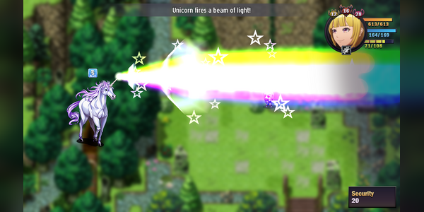 Then we have not that much progress in Clockwork Forest but we do have a bit to report here on the side of our assistant developer Trihan who made some progress with improving and adding miniboss fights. The Unicorn already got in last week but wasn't fleshed out yet. It now has a unique skill set with the concept of a laser beam that continously doubles its power throughout the battle. Apparantly also the miniboss guarding the way forward to the western forest half has also been implemented but I didn't have the chance to check that one out yet.