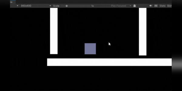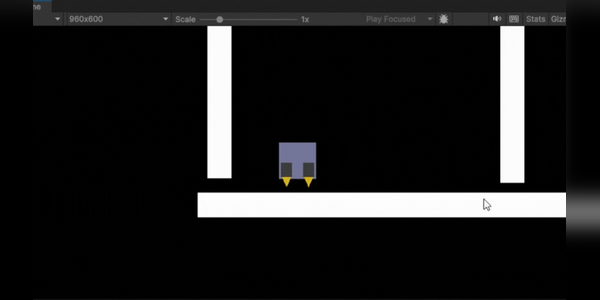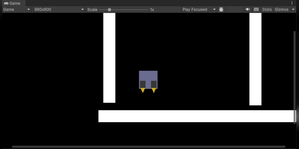 (Figure 1: Initial frame of this build. Shows player with thruster in the start of the obstacle course.)