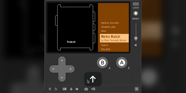 I mapped Playdate's d-pad to Pebble's four buttons and so far, this is working fine. I am considering mapping Playdate's b-button to one of Pebble's buttons for titles that really only use one button (I have one particular game in mind, of course…). The UI inspects the running watch application so that only clicks that will have an effect on the app will be indicated as such. As part of this work, I also rewrote the screen update routines to take advantage of Playdate's sprite system.
