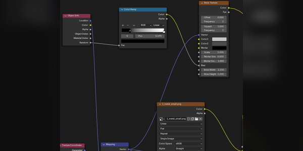 Lastly, before the other major thing I did to this diorama, was using varied textures on the walls. It was a real eye-sore that the walls and floor had a repeating pattern, and I literally had alternate textures sitting in my folder. Naturally I duplicated the materials, swapped the textures and applied that across my diorama to break the pattern and add visual interest. I even went a little beyond and made a mask in the Blender shading graph that would randomise the metallicness of each of the small tiles, using a brick noise texture.