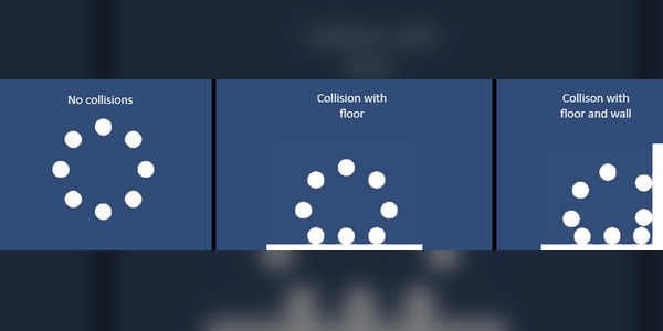 These controllable variables allow me to create a wide range of unique soft-bodies, which hopefully will allow for easier tweaking of the soft-body later in the development process. The creation of the soft-body can be broken down into several steps. The distribution of the desired number of points onto a circle, next the placing of the segment prefab (a game object with a 2D rigid-body and 2D circle collider) at each of the points that have just been calculated and then finally linking all of the generated segments to every other segment, and the center of the soft-body with springs. Below are images showing the soft-body reacting to diffrent types of collision.
