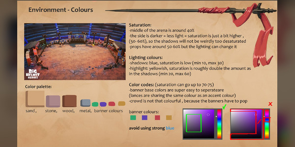 The art bible has been completed and can now serve as a guide for us during asset creation. It now contains the entire *vibe* we are aiming for. Guidelines on character design, the UI, props, textures etc will help us give this game the the best fitting art style possible.