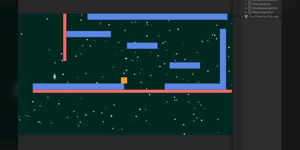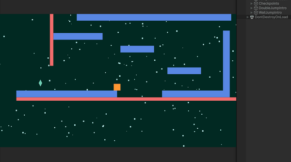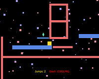 "Not being able to reset my jumps if I am standing on top of wall jump material fells 'off'" [Author Note: I totally get that, it feels a little strange to me too, but I was going for a unique feel and mechanic to the game, and in the end I really liked how I could make extra puzzles with this mechanic.]