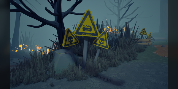 One artist reworked the start of the level to look more wrecked and war-torn. the foliage and ground look dead now, and the whole area feels like something bad happened there. They also created a landmine that matches their other props, and the fire effects got a nice upgrade to look more stylized with improving the game speed. The main menu got a clean up too, with new buttons, a proper background, and a bug fix so sub-menus don’t overlap anymore. They also changed up the lighting based on some feedback, added spooky warning signs for obstacles, and made the fence look a lot more threatening. And our character finally has proper jumping now! no more awkward floating around.