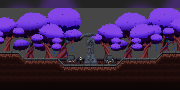 The game will now have a updated look to it with brand new assets that more closely align with the vision of the first world/level being Soul Valley. Soul Valley is known for its winding trees to house souls! The design took me a few days to work on and to color and texture and ultimately they came out better than i could've imagined. I also made updates to the shrine area and new ground tile assets that you will see throughout this part of the game, still taking from what I liked about the previous tiles into the new ones with the skull carvings on the rocks!