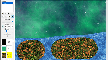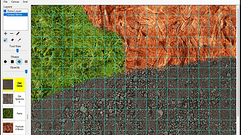 - Drawing or spray painting circle or square shapes of user selectable size and opacity with solid colors or one of the many included textures.