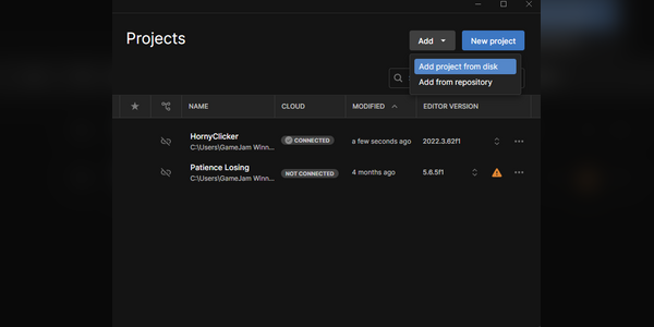 Now that you have Unity Hub installed and ready next step is to add the source code to the hub. Here is an image of how to do so: