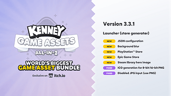 A new update for Kenney Game Assets All-in-1 (Launcher) has been released, you can download the update by clicking the link below or by launching the itch.io ap...