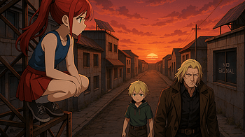 . A red sun rises. A boy stumbles into the dirt and finds a sword buried like it was waiting for him. An android girl shadows his steps, silent, watchful — th...