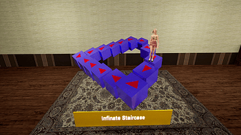Visit 6 displays of impossible dimensions including "Infinite Staircase" and "Impossible Cube" in 3D. Turn on CC to see the common names for the displays...