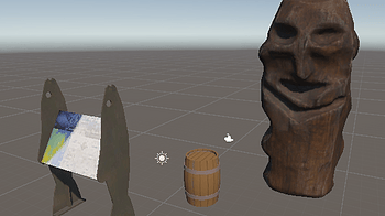 Initial Unity Scene This is the initial scene we were required to make. It contains my barrel, fishing guide, and a public domain museum model from Sketchfab...