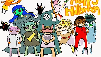 Happy Halloween. Pictured from Left to Right: Gift Pixie, Monitor, JAX, Bad Girl, Mr. Woodcut, Wacky (Paper Mall), Miss Gun, Sun (PM), Artist (PM), Moon (PM) I...