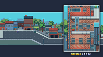 I've been working on a 32x32 px version of the Urban City Tileset. It's now available. Same core structure: streets, sidewalks, building facades, diagonal varia...