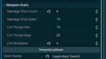 This is one example of how your items would look like in the inspector. I chose weapon since it takes more attributes to edit Starting from the top you have the...