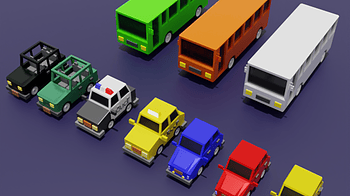 Cars Pack: Description A colorful Low Poly Vehicles Pack featuring cars, buses, taxi, police vehicle, and utility vehicles — ideal for city games, traffic sim...