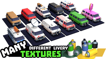 Low-Poly 1995 Van 3D model. Stylized low-poly cartoony aesthetic. Many different liveries and customizable car parts. Pick one of the 11 provided textures , or...