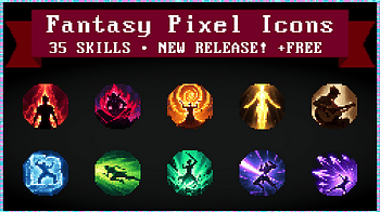 [NEW RELEASE] Fantasy Pixel Icons | Skills Now Available Free version: 13 icons Pro version: 35 unique skill and ability-themed icons Includes PNG formats acros...
