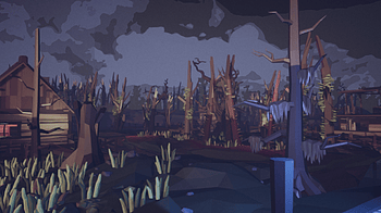 The swamp town is built from modules: walls (plank siding with patches), roofs (corrugated gables + lean-tos), windows/doors as swappable inserts. Stilted house...