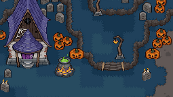 What's in the free holiday update? A witch house grass tiles/cliff and dirt Cauldron (3 frame animation) 2 types of scary pumpkins 3 types of grave stones witch...