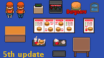 This week update allows you tu build a burger shop complete with workers: a register, soda machine, sign, a new window, interior decorations, trays with and wit...