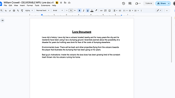 C: This week I moved the "Lore document" card to the in progress column because thats what I worked on this week. I also started working on the "Audio slide dec...