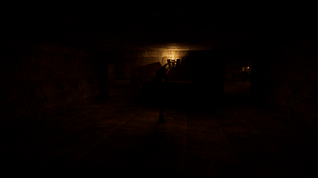 Final Build Lighting- Most if not all of the lighting for this project comes from fire, with torches being placed around the map to light the scene for the play...