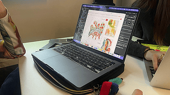 Photo of peers discussing visual elements, concept design and playtesting the project...