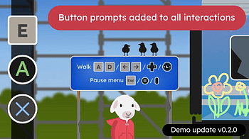 Hello! I've updated the demo to v0.2.0: Implemented button prompts for all interactions. You can choose between keyboard, XBox and PlayStation button styles fro...