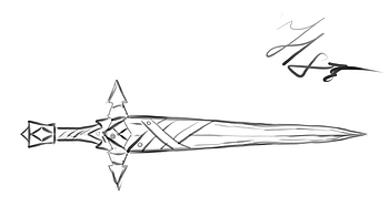 Started with the most important thing — the object that will become the key element of the location. This isn't just a sword: it's a narrative anchor that the...