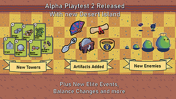 New Version of the play test Includes: Artifacts added to game for long term passive bonuses A new second island in the desert 7 new towers to find and build...