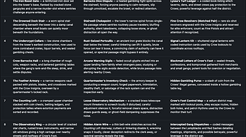 The Crow’s Nest rises crooked above Crow’s Foot — an ancient black-stone tower whose narrow windows glow like watchful eyes over the alleys below. Once a...