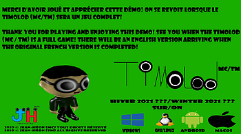Une démo jouable vera peut-être le jour cet été ou cet automne. Soyez nombreux a tester notre jeux en démo dès que la démo soit disponible et donnez nous...