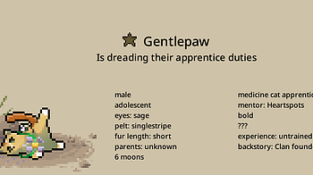 the 1st update, it's minor though.. StarClan's background has starflowers now! (the blue flowers shown on dead cats.) The dark forest background now has darkflo...