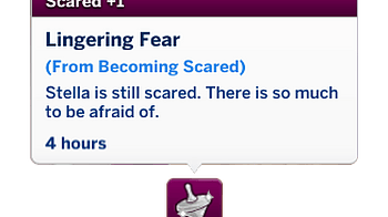 Emotional Inertia support for the Scared mood The Emotional Inertia features now fully support the new 'Scared' mood. Scared moodlets will last longer and be mo...