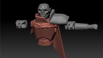 The current progress on the Ghost knight main character, all pieces shown have been beveled and I have started to texture and shape the cloak...