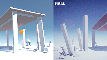 For Foxhunt 2018, the first thing I worked on was the white and blue salt-desert look. I plopped down a few default cubes on a plane, spun up an emissive red su...