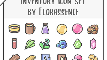 I hand-drew 20 kinds of icons, 2 each of Foods, Potions, Herbs, Woods, Marbles, Ores, Crystal, Books, Coins and Gems, with a simple, clean look, that can be use...