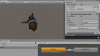Here's a super quick solution for you to trigger audio on your animations. 1. Open the animator window and pick the state you want. 2. Click on the AddBehavio...