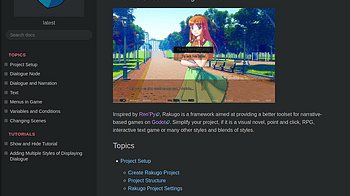 Here are new RakugoDocs Now hosted on ReadTheDocs and use the same software as GodotDocs . https://rakugodocs.readthedocs.io They use also MyST so I can write i...
