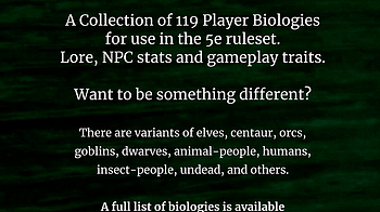 119 new 5e player biologies (races). Gameplay traits, lore, and NPCs.