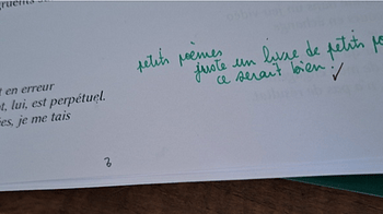 aujourd'hui de l'élan ce matin j'ai rangé des tiroirs et j'ai préparé l'espace pour des correspondances et j'ai rangé la pochette avec les textes imprimés...
