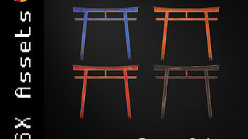 Low-poly PSX style collection of 4 game-ready assets including: Torii Gate colors Red Orange Blue Black PBR texture sets for materials: Wood with multiple color...