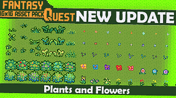80 new assets including flowers, grass, and small bushes A lively update for Fantasy Quest ! This one brings new plants, bushes, and flowers to decorate your te...