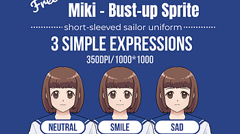 I'm excited to release my first NPC sprite asset — Miki! This is a free bust-up character with 3 expressions (neutral / smile / sad), designed for background...