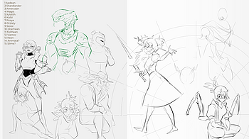 Today's stream, I sketch out a planned Sapient page, showcasing all the playable Sapients in one big group picture at the start of the Chapter! I also talked ab...