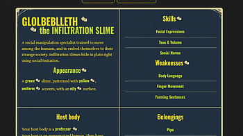 As a fun side project I've been creating an online tool for generating Alien Brain Slime characters. You can randomize your slime, or your host body and reroll...