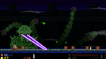 I managed to upload something playable, but unfortunately it didn't get as far as I had planned... the level is much too short, you still win because the heart...